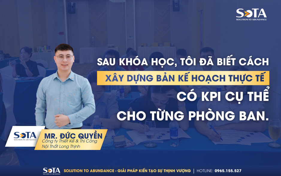 Mr. Đức Quyền (Công ty Thiết kế và Thi công Nội thất Long Thịnh) chia sẻ: “Trước đây, việc lập kế hoạch trong công ty tôi chỉ mang tính chất đối phó, làm cho có. Sau khóa học, tôi đã biết cách xây dựng bản kế hoạch thực tế, có KPI cụ thể cho từng phòng ban. Cả đội ngũ nhìn thấy mục tiêu chung, và quan trọng là mọi người biết mình đang ở đâu, cần làm gì để đạt được kết quả.”